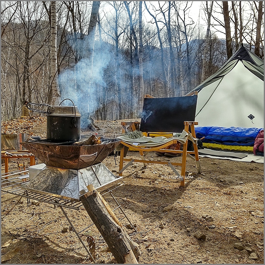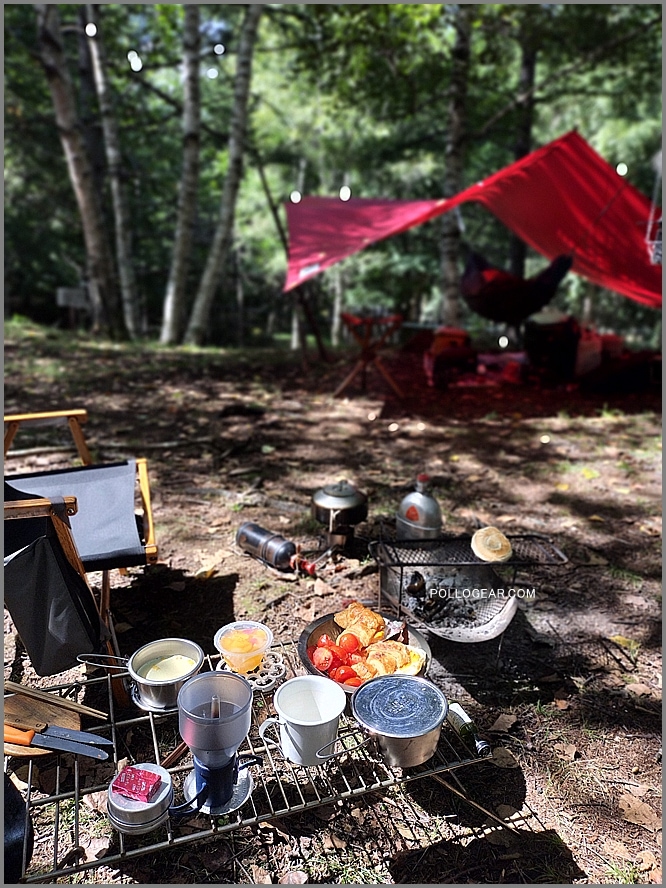 元々は直火用のグリルですが、良いサイズ感なので、焚火サイドのテーブルとして使ってください